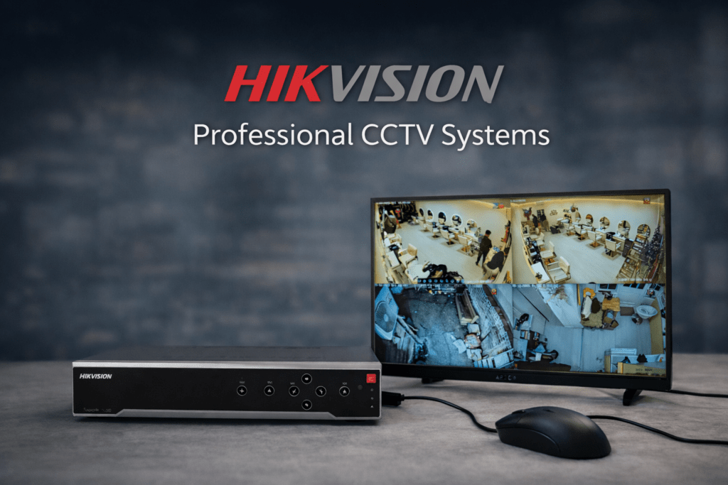 Professional CCTV installation in London and surrounding areas, using Hikvision systems with remote viewing via Hik-Connect for homes and businesses.